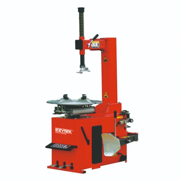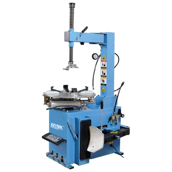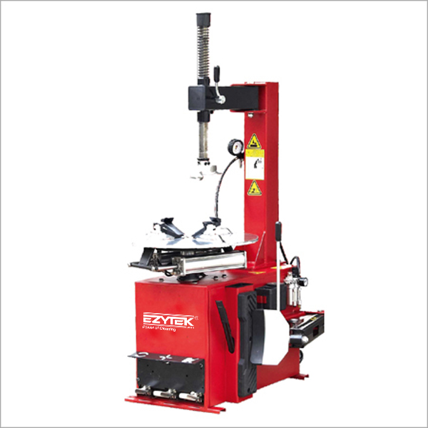 The EZY-TC40 is a semi-automatic tyre changer for cars and light commercial vehicles (LCVs), featuring a pneumatic twin-cylinder 4-jaw self-centering chuck, horizontal moving arm, and alloy jaw protectors for firm clamping and safe operation on alloy wheels, handling rims 10-21 inches with a large 930mm max diameter, requiring 6-8 bar pressure and single-phase power.